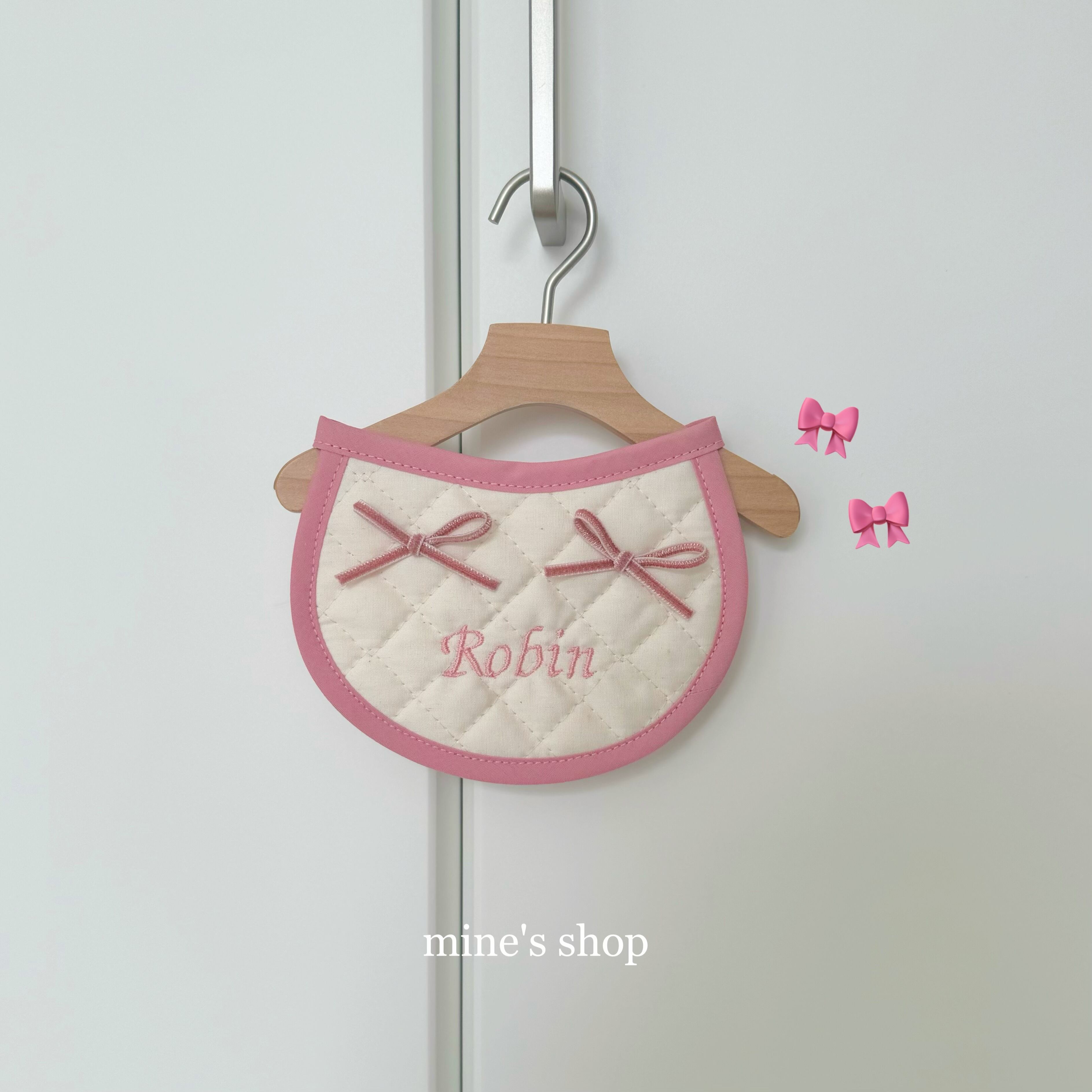 【受注/14営業日後発送】W ribbon name bib (Rose pink)